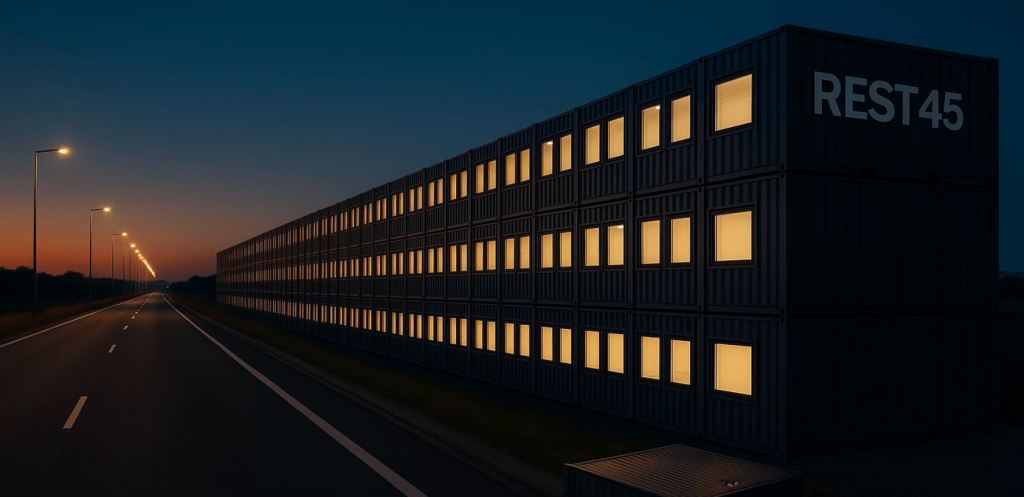 Unsere Vision Wir schaffen ein europaweit skalierbares Netzwerk moderner und komfortabler Ruheplätze direkt an den wichtigsten Autobahnen Europas. Unsere modularen Road Hotels bieten LKW-Fahrern eine gesetzeskonforme, digitale und hochwertige Alternative zur Übernachtung in der Fahrerkabine – direkt an den Hauptverkehrsrouten, EU-konform und zukunftssicher umgesetzt.